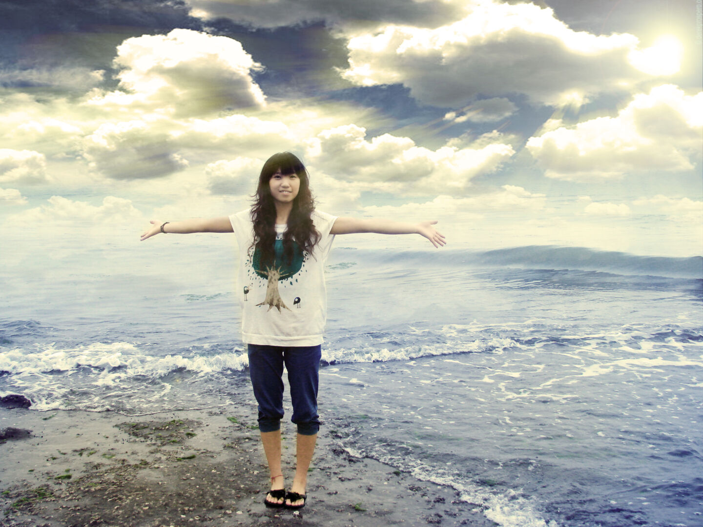 艺术化:保持真实性 艺术化:深度艺术化 人物磨平或者可以做手绘,大海蓝天一定要蓝